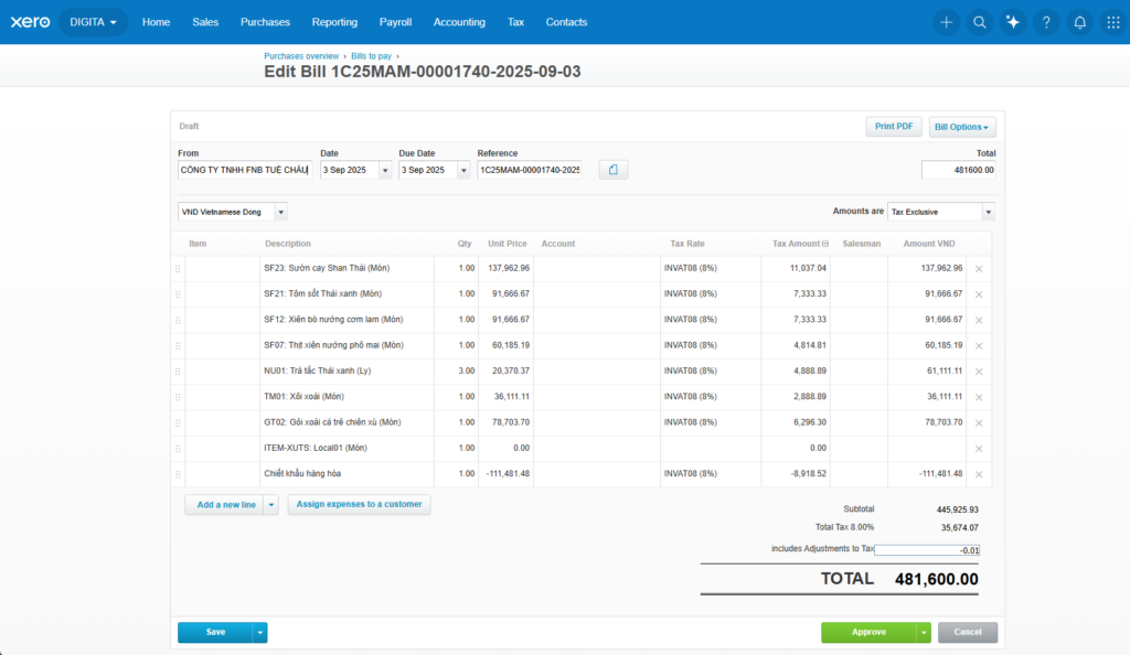Tính năng này được phát triển nhằm hỗ trợ khách hàng đang sử dụng Xero tại DIGITA tối ưu hóa quy trình xử lý dữ liệu hóa đơn, giảm thời gian thao tác thủ công và hạn chế sai sót trong quá trình nhập liệu.